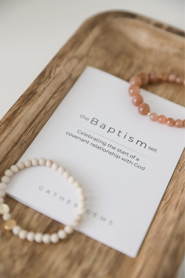 For the little girl choosing to enter into baptism, the set serves as a meaningful reminder of the covenant she is making and the promised blessings she will receive. Includes the God’s Daughter bracelet, to remind her whose she is. Paired with the New-Because of Him bracelet, symbolizing that through her covenants and the sacrament, she can be new each week—because of Him.
